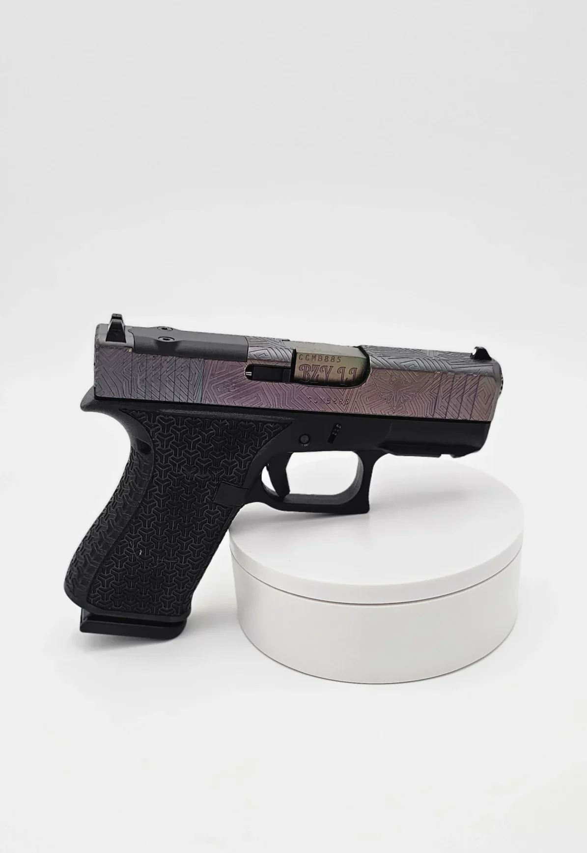 Using a combination of sanding and engraving, the stippling process provides a new look and texture to the grip of the firearm. This process is commonly done on Glock handguns.